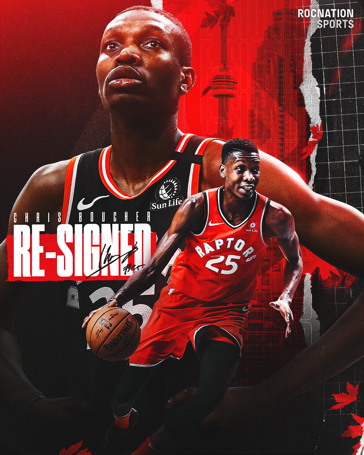 for RocNation Sports after Chris Boucher re-signed with the Toronto Raptors.
